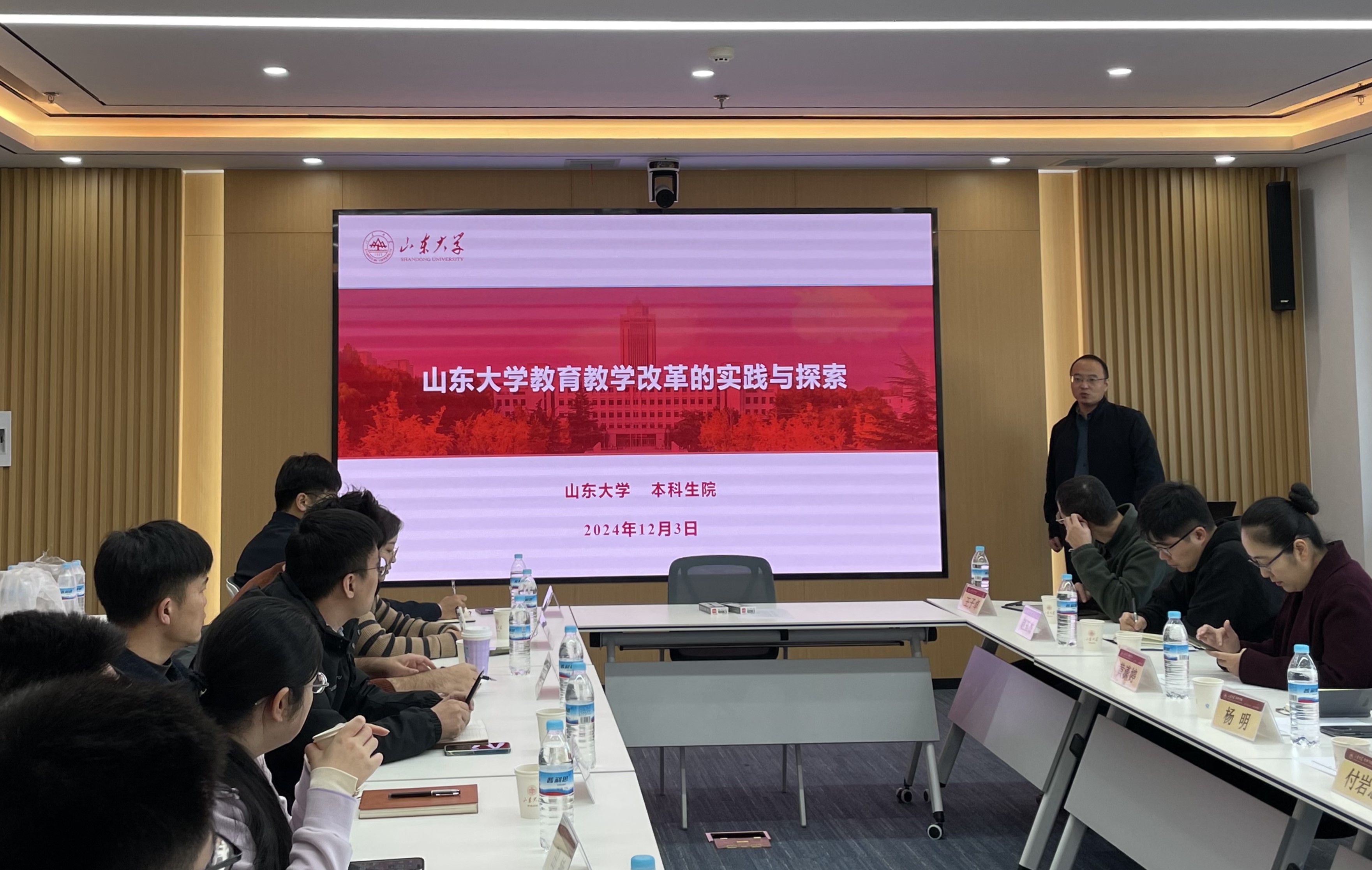 座谈会上,杨明作“永利集团3044am官方入口教育教学改革的实践与探索”主题报告,系统介绍了学校近年来在学科建设和人才培养上取得的重要成果,着重阐述了学校“六堂一院”引领的拔尖创新人才自主培养体系设计思路、建设成果和下一步改革方向,鼓励青年教师积极参与山大特色金课体系、一流教材体系、“五位一体”实践育人体系建设等,不断激发本科教育教学改革活力,涵育高水平教学成果。